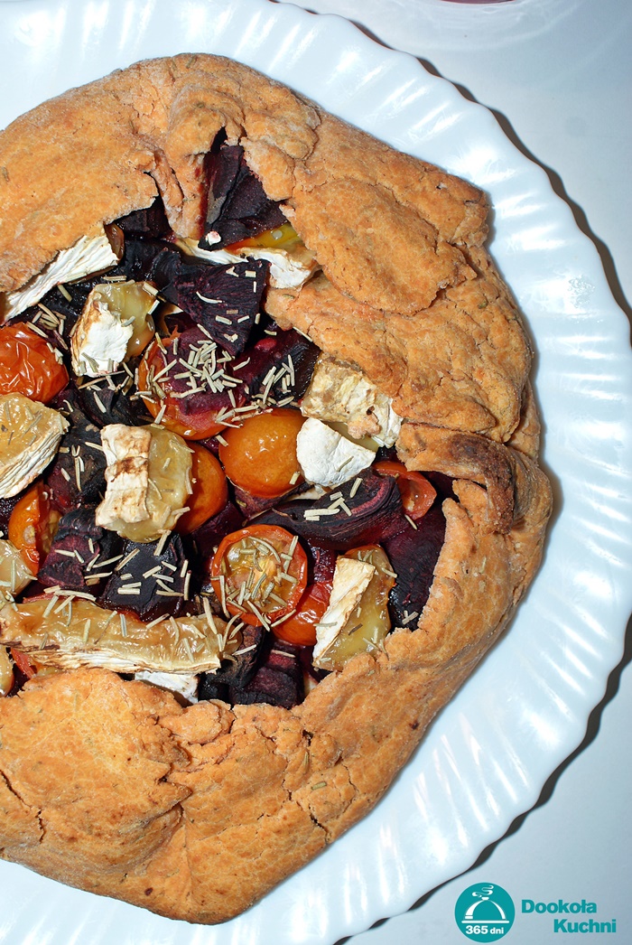Galette z burakiem i serem pleśniowym to propozycja dla osób, które zdrowo się odżywiają, a także tych, które unikają glutenu, jajek i laktozy (ser pleśniowy możecie bez problemu zamienić na ser kozi). To także przepis dla miłośników kulinarnych eksperymentów i niecodziennych smaków, ale także tych osób, które chcą urozmaicić swoję dietę. Często wracam do tego dania, ponieważ jest szybkie i tak naprawdę można je wykonać w wielu różnych wariantach. Spód zwykle przygotowuje właśnie z mąki z soczewicy i ciecierzycy, ponieważ z wszystkich bezglutenowych wersji, akurat ten wariant smakuje mi najlepiej. Farsz pozostaje dużą dowolnością – ja dziś wykorzystałam do niego buraki, ser pleśniowy i pomidorki, ale nie widzę problemu, żebyś Ty użyła innych, swoich ulubionych produktów.